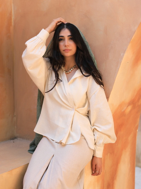 جنس لینن راه راه (یه مقدار بدن نما ) بدون آبرفته